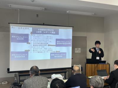 茗溪学園中学校高等学校の大野智史先生による「日本史探究における学習メディアの活用-歴史まんがから深める国風文化-」というテーマでの授業実践発表が行われました。